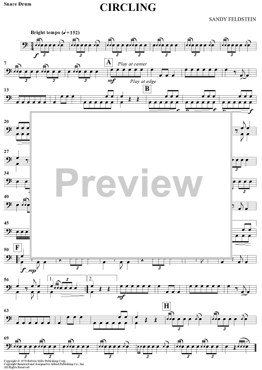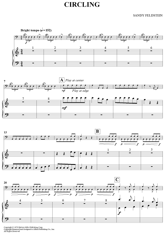 Digital Sheet Music for Circling by Sandy (Saul) Feldstein scored for Snare Drum/Piano; id:435227