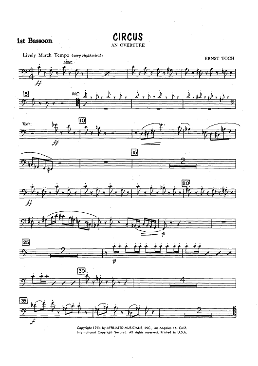 "Circus - An Overture - Bassoon 1" Sheet Music by Ernst Toch