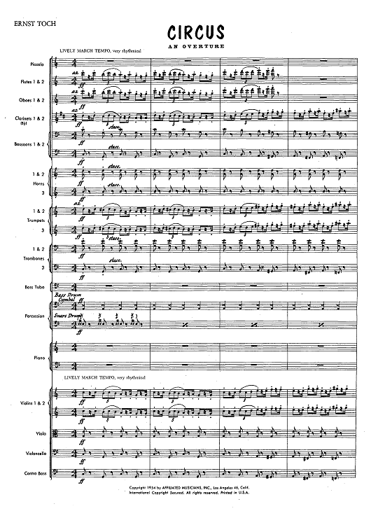 Digital Sheet Music for Circus - An Overture - Score by , Ernst Toch scored for Orchestra; id:433225