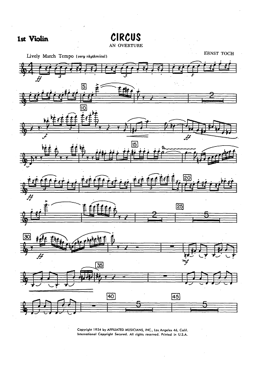 "Circus - An Overture - Violin 1" Sheet Music by Ernst Toch
