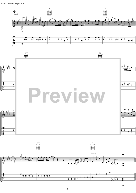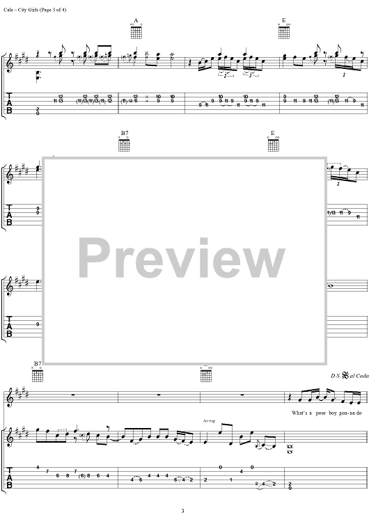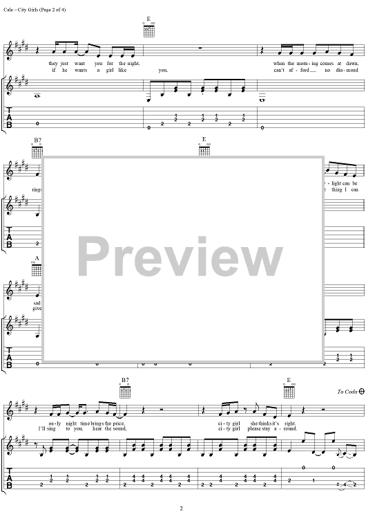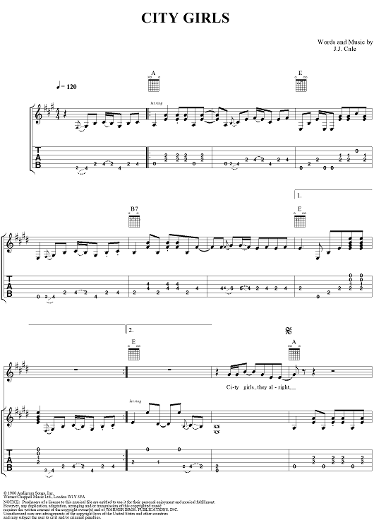 Digital Sheet Music for City Girls by J. J. Cale scored for Guitar Tab/Vocal; id:273364