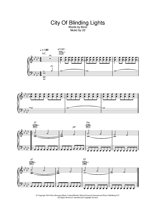 Digital Sheet Music for City Of Blinding Lights by U2, Bono scored for Piano/Vocal/Chords; id:381685