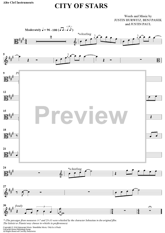"City of Stars - from La La Land - Alto Clef Instruments" Sheet Music by Justin Hurwitz