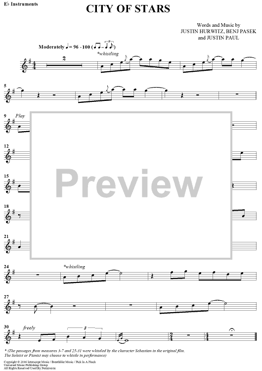 "City of Stars - from La La Land - Eb Instruments" Sheet Music by Justin Hurwitz