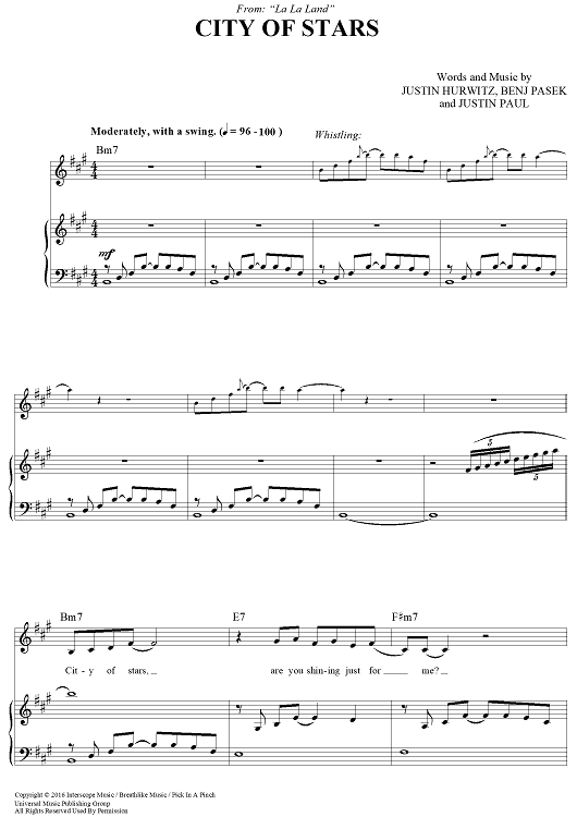 Digital Sheet Music for City Of Stars - from La La Land by Benj Pasek, Justin Paul, Justin Hurwitz scored for Piano/Vocal/Chords; id:461109