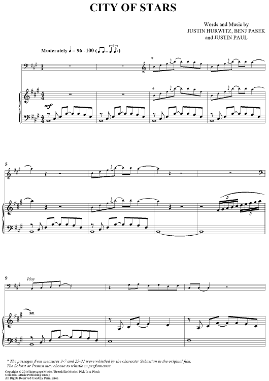 "City of Stars - from La La Land" Sheet Music by Justin Hurwitz