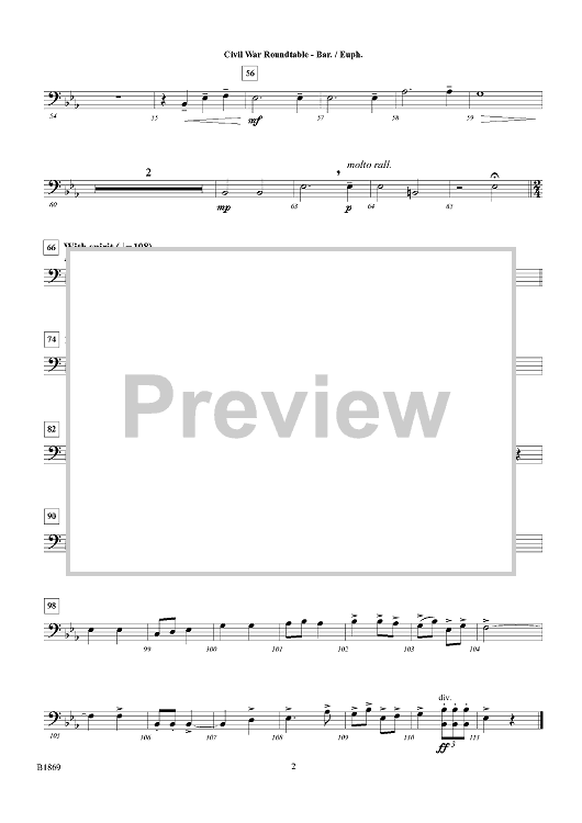 "Civil War Roundtable - Baritone / Euphonium" Sheet Music by Traditional