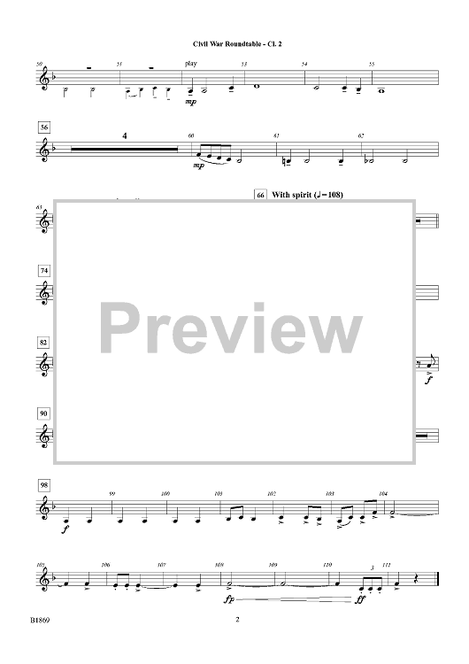 "Civil War Roundtable - Bb Clarinet 2" Sheet Music by Traditional