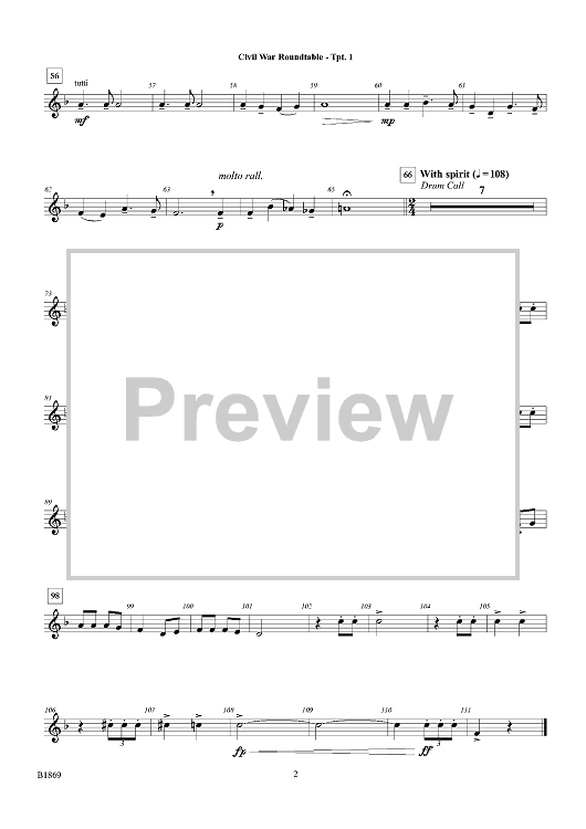 "Civil War Roundtable - Bb Trumpet 1" Sheet Music by Traditional