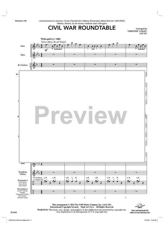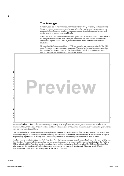Digital Sheet Music for Civil War Roundtable - Score by Traditional, Timothy Loest scored for Concert Band; id:498429