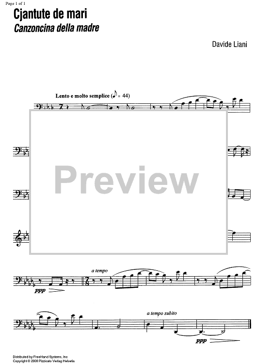 Digital Sheet Music for Cjantute de mari by , Davide Liani scored for Mezzo-soprano or Baritone/Flute or Cello/Piano; id:349958