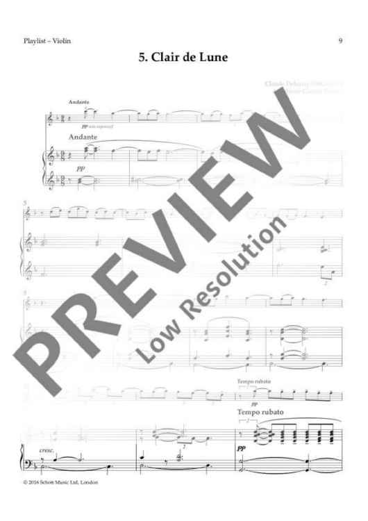 Digital Sheet Music for Clair de lune by Claude Debussy, Barrie Carson Turner scored for Violin And Piano; id:491095