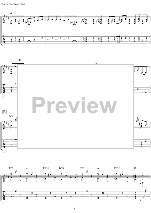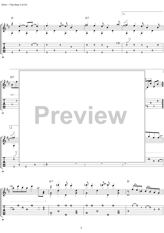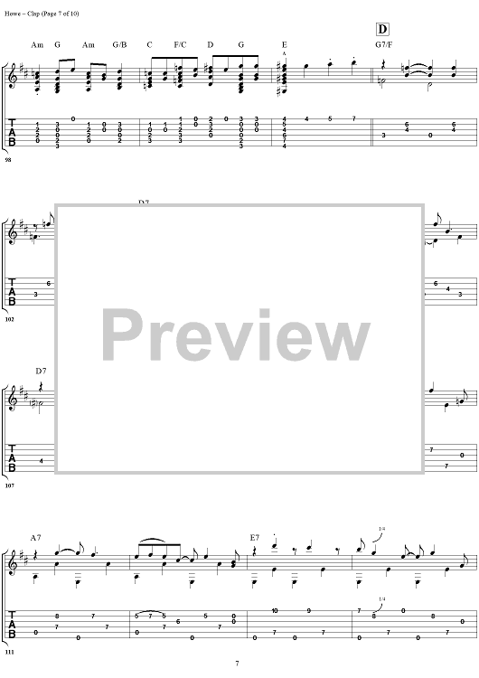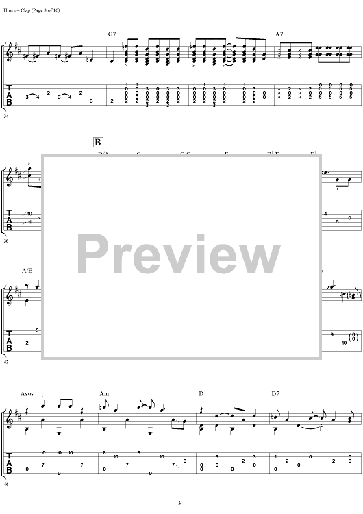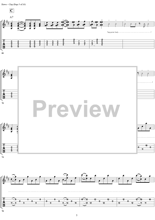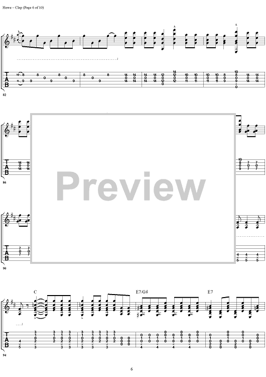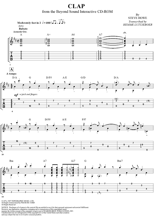 Digital Sheet Music for Clap (Steve Howe Interactive version) by Steve Howe scored for Guitar Tab; id:171563
