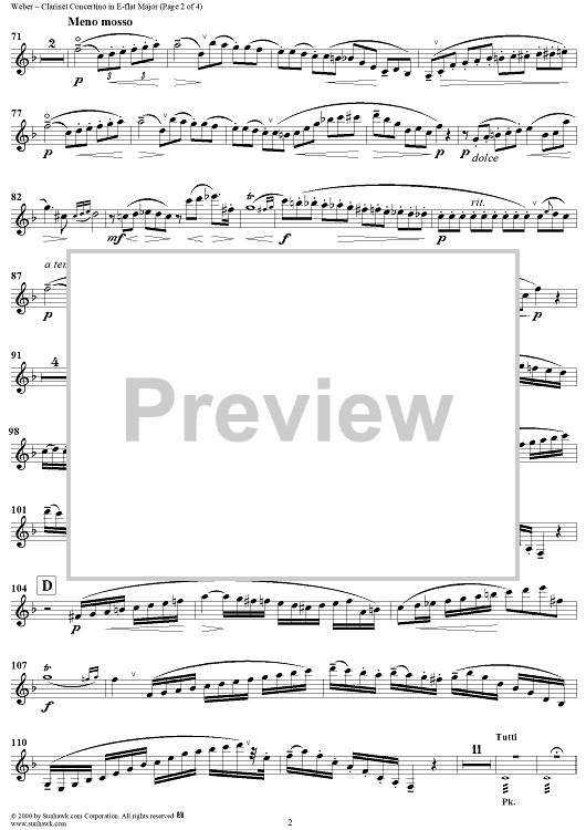 "Clarinet Concertino in E-flat Major, Op. 26 - Clarinet" Sheet Music by Carl Maria Von Weber