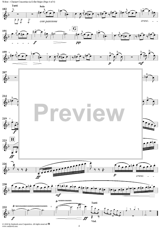 Digital Sheet Music for Clarinet Concertino in E-flat Major, Op. 26 - Clarinet by Carl Maria Von Weber scored for Clarinet/Piano; id:264348