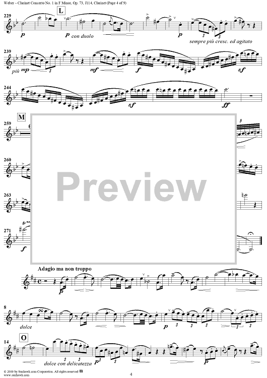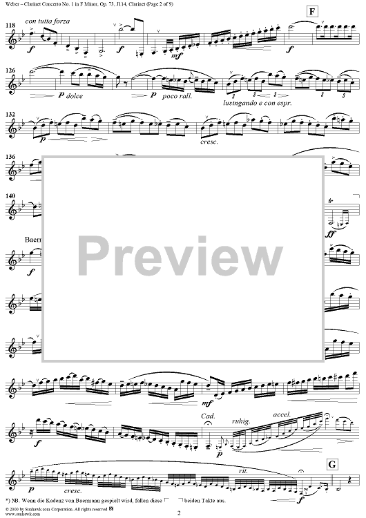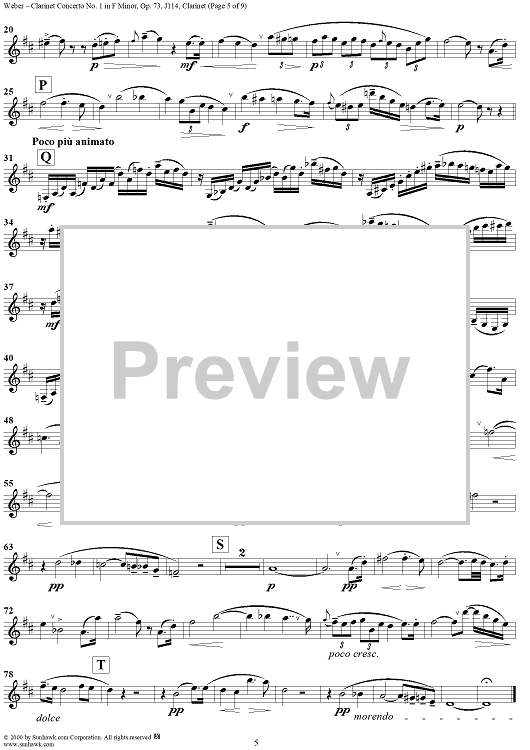 Digital Sheet Music for Clarinet Concerto No. 1 in F Minor, Op. 73 - Clarinet by Carl Maria Von Weber scored for Clarinet/Piano; id:264326