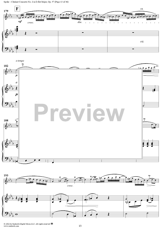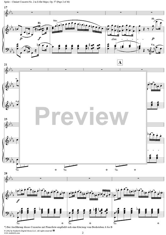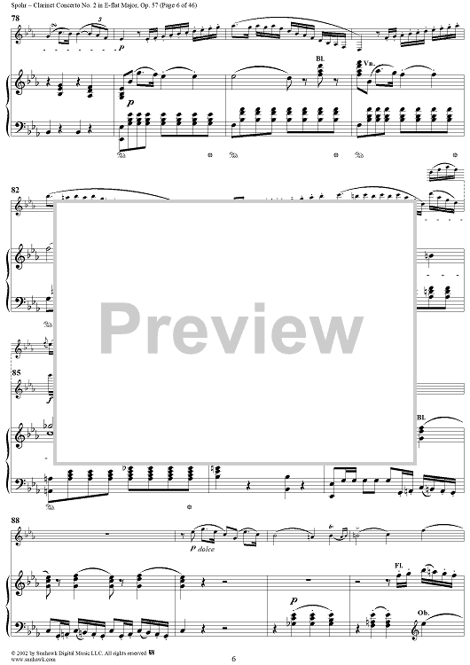 Digital Sheet Music for Clarinet Concerto No. 2 - Piano Score by Louis Ludwig Spohr scored for Clarinet/Piano; id:258556
