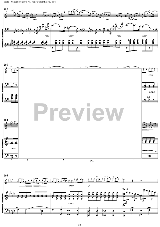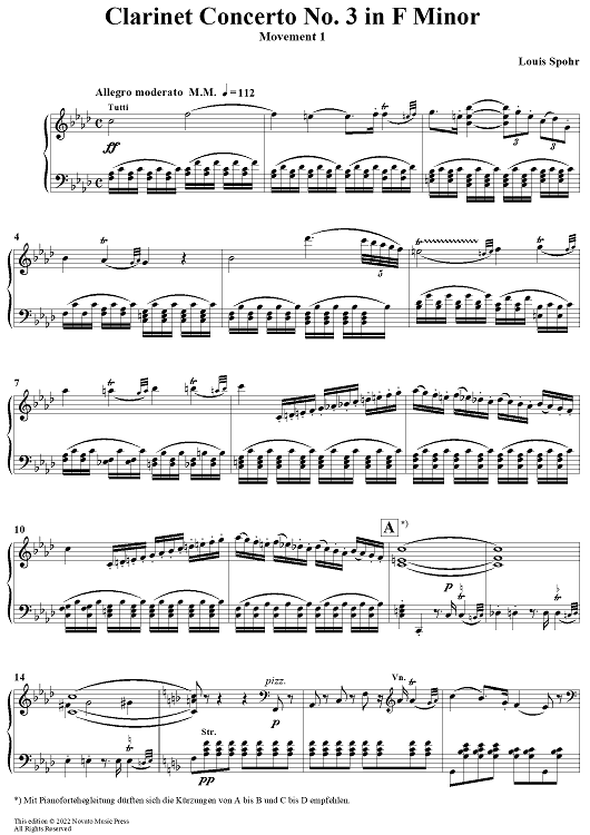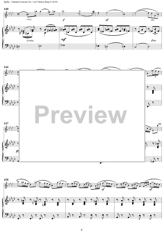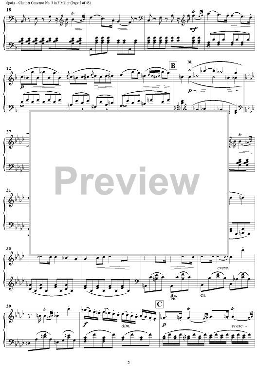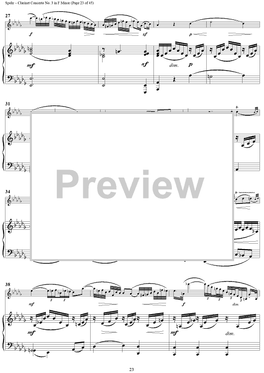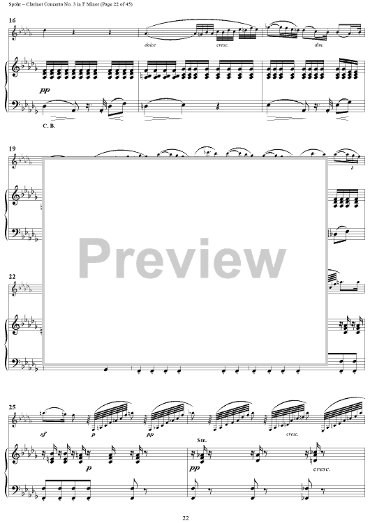 Digital Sheet Music for Clarinet Concerto No. 3 - Piano Score by Louis Ludwig Spohr scored for Clarinet/Piano; id:309438