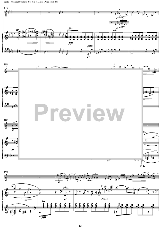 "Clarinet Concerto No. 3 - Piano Score" Sheet Music by Louis Ludwig Spohr