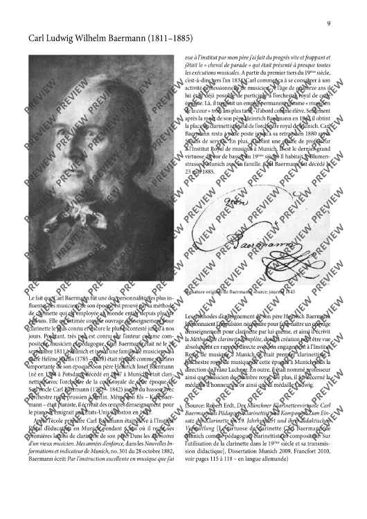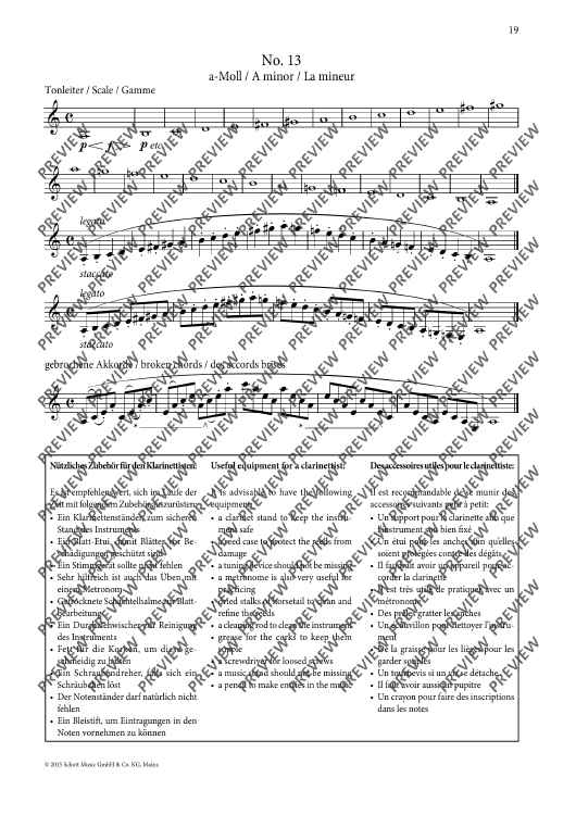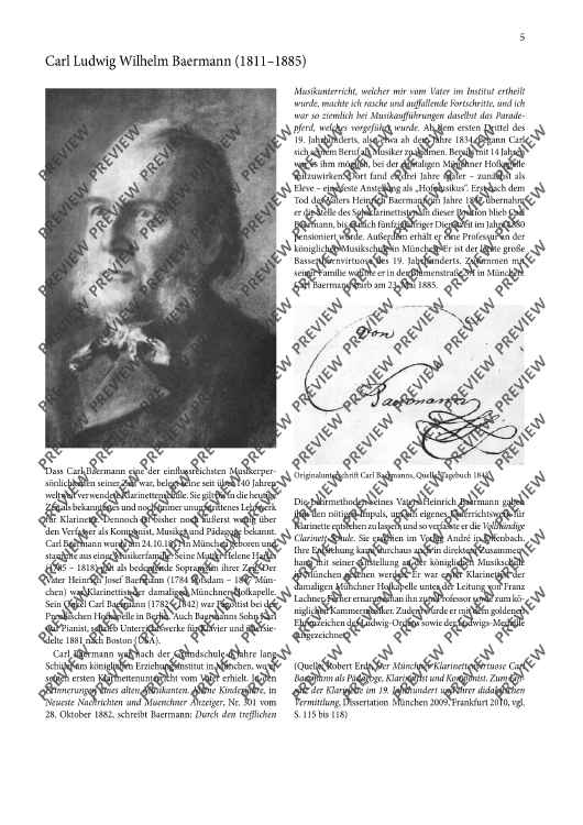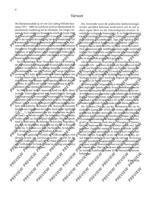 The clarinet method op. 63 by Carl Baermann from 1867 is still a standard work in classical clarinet education today. The thoroughly revised new edition aims at reviewing the educational concept, which is still valid today, for modern lessons, adjusting the music and texts, and sensibly complementing the teaching contents. The editor who draws on many years of experience as a clarinettist in an orchestra and university lecturer of clarinet has succeeded in adapting the valuable teaching material to the requirements of today while maintaining the basic methodology. The result is a total of 7 volumes: Clarinet Method Vol. 1 and Vol. 2 (ED 21761, ED 21762) Clarinet Method Vol. 1, with online material (audio), and Vol. 2, with 2 CDs (ED 21761, ED 21762-50): The audios contain the piano accompaniment for the performance pieces, with and without clarinet Tune Book 1 and 2 (ED 21763, ED 21764): piano score of the method's performance pieces, with additional inserted clarinet part Daily Exercises (ED 21765): systematic scale, interval and chord exercises in all keys, complemented and published separately from the original method Due to trilingual nature of all editions (German, English, French), they can be used universally. About the revision: The musical text is based on the first edition of the method. Only a few differences concerning the articulation as well as some misprints and typographical errors were revised. By deleting the historical fingering instructions for the German fingering system, the clarinet method not only has a clean and, compared to the original, more clearly structured layout, but can also be used universally. The content of the text and the performance directions of the original were linguistically modernized and occasionally extended by further ideas from the teaching practice, such as concepts for warming up, breathing exercises, literature suggestions or tips for daily practising. Further additions of scale and triad studies in all major and mi