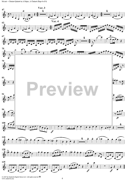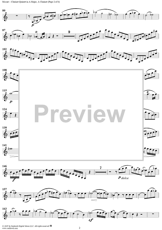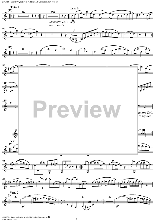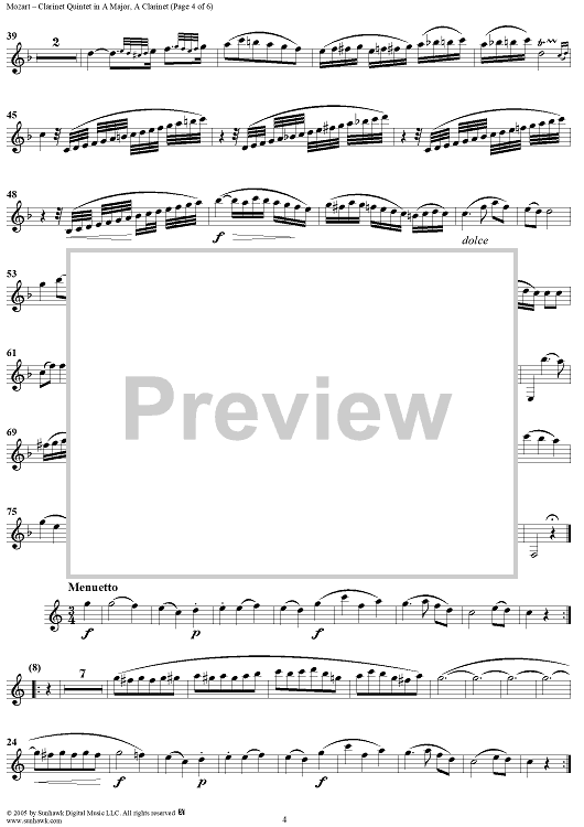 "Clarinet Quintet in A Major, K581 - Clarinet" Sheet Music by Wolfgang Amadeus Mozart