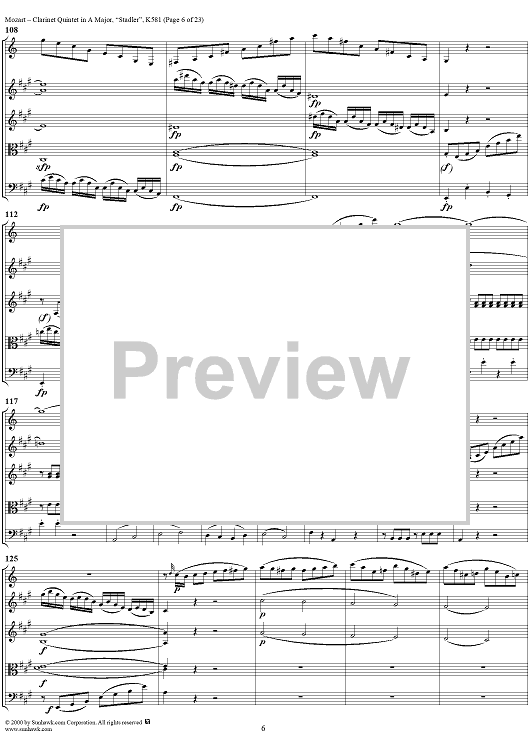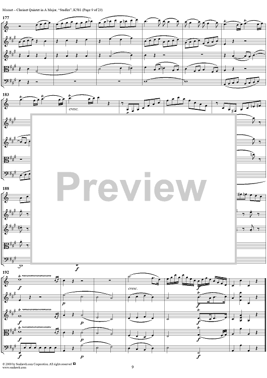 "Clarinet Quintet in A Major, K581 - Full Score" Sheet Music by Wolfgang Amadeus Mozart
