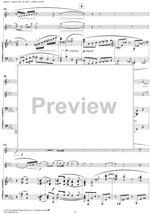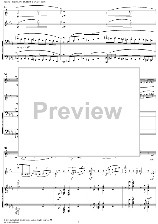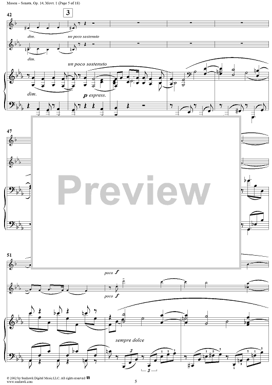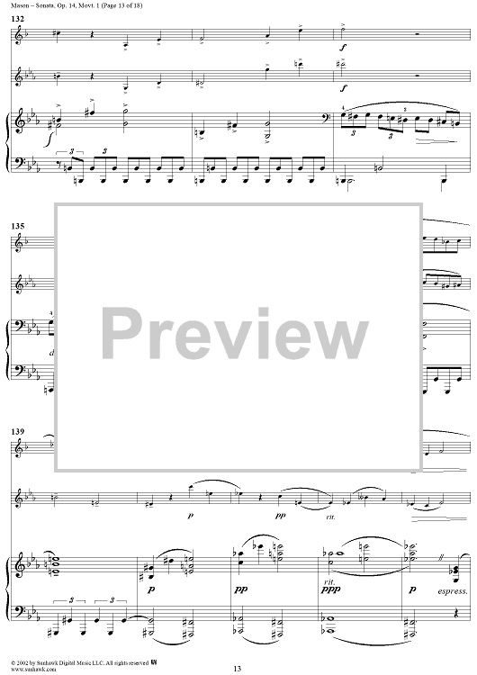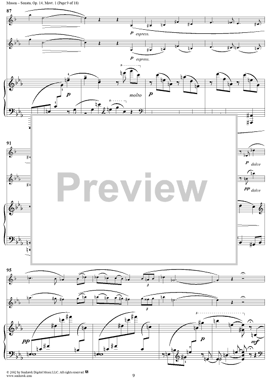 "Clarinet Sonata, Op. 14, Movement 1 - Piano Score" Sheet Music by Daniel Gregory Mason