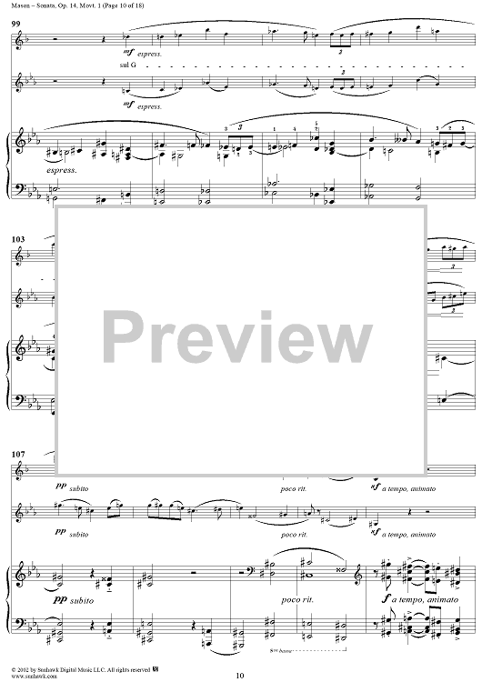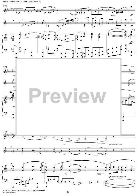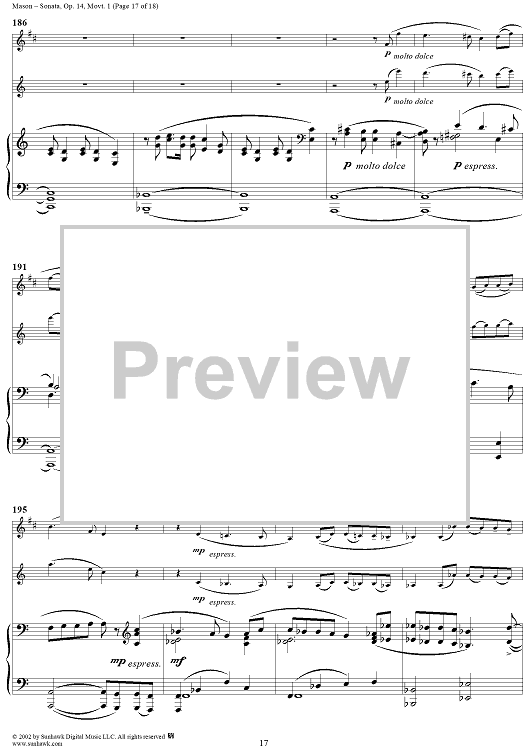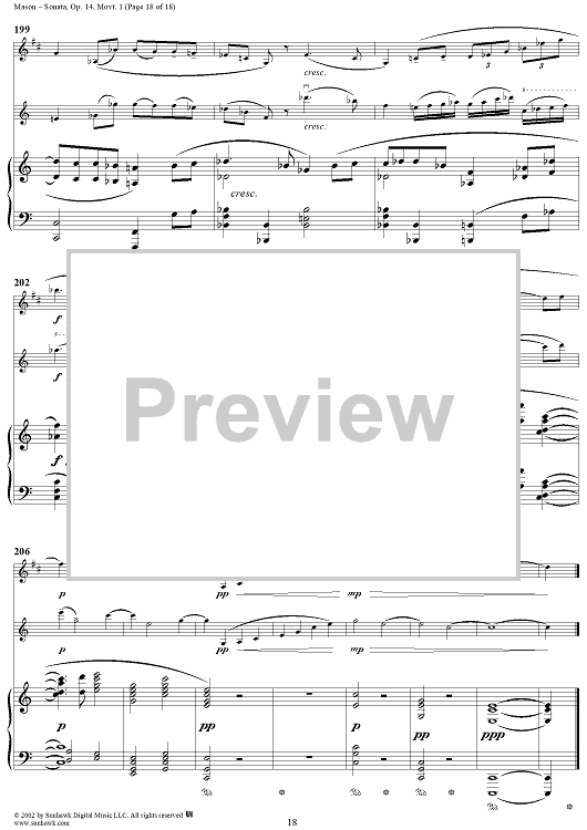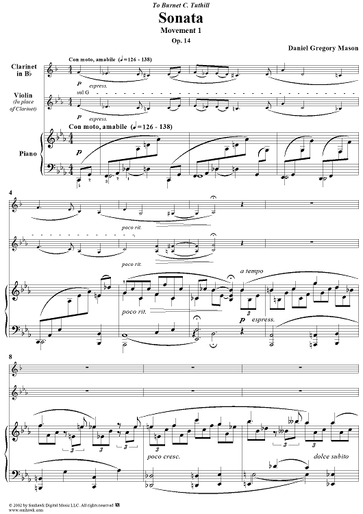 Digital Sheet Music for Clarinet Sonata, Op. 14, Movement 1 - Piano Score by Daniel Gregory Mason scored for Clarinet/Piano; id:269468