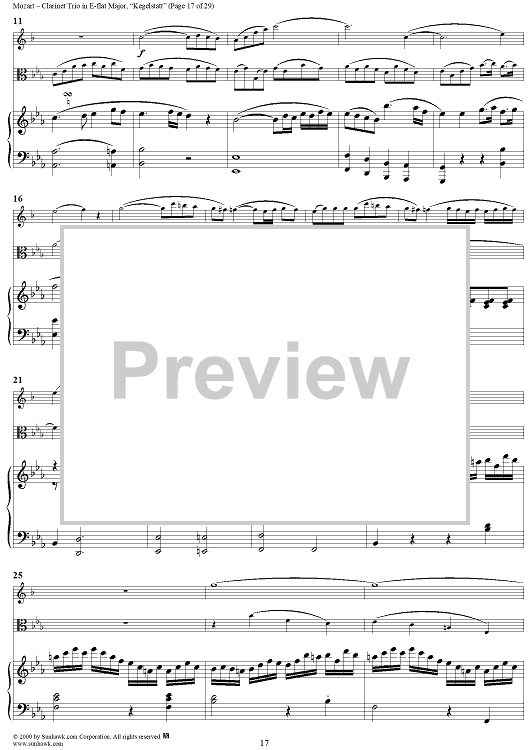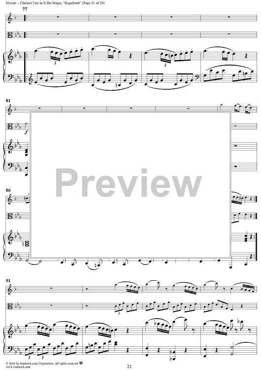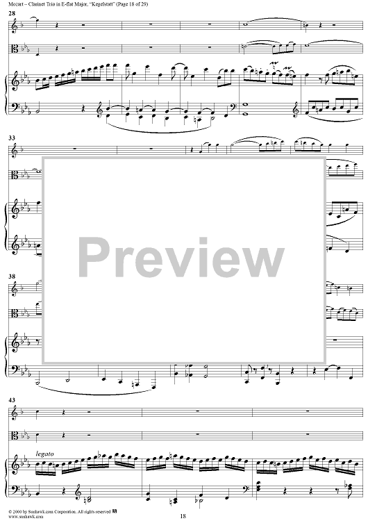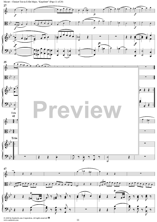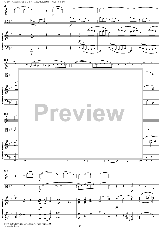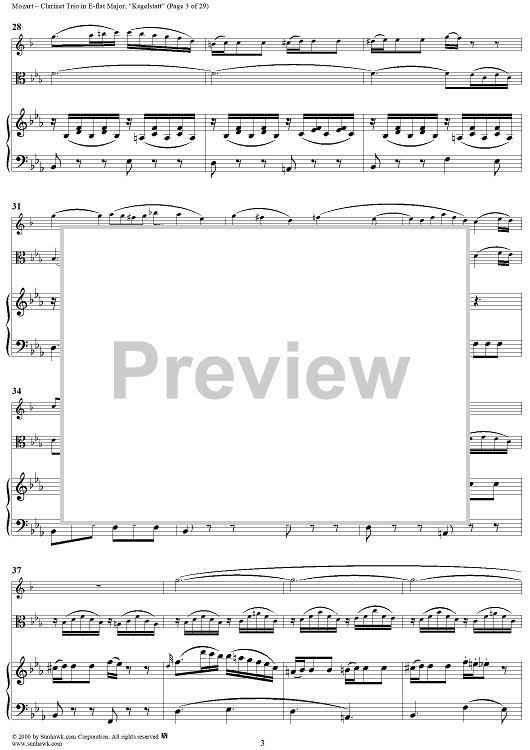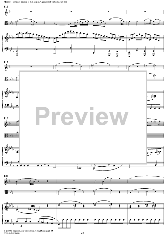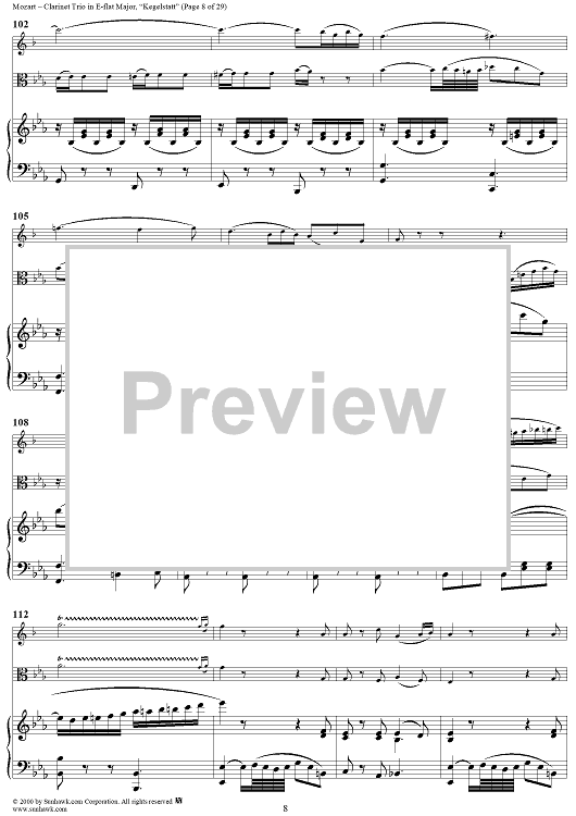 Digital Sheet Music for Clarinet Trio in E-flat Major - Piano Score by Wolfgang Amadeus Mozart scored for Clarinet/Viola/Piano; id:260333