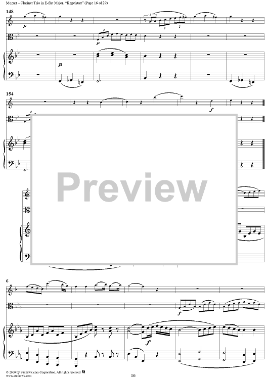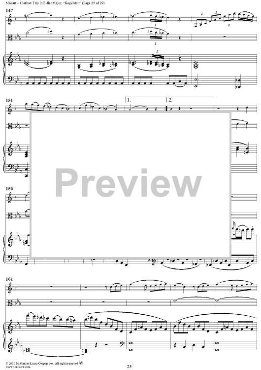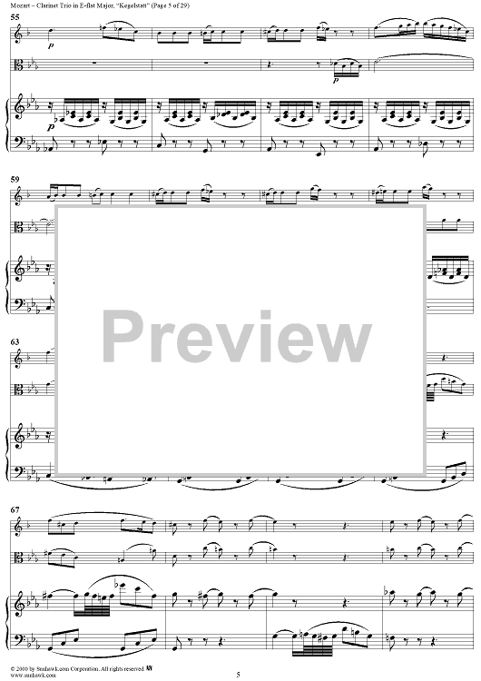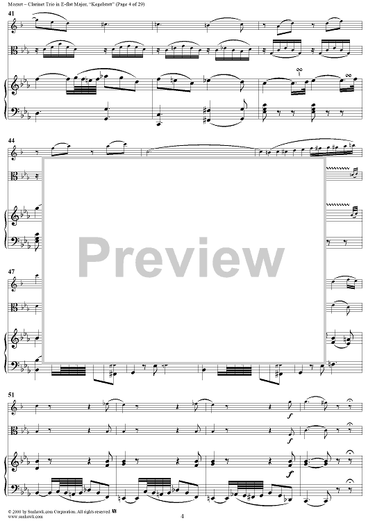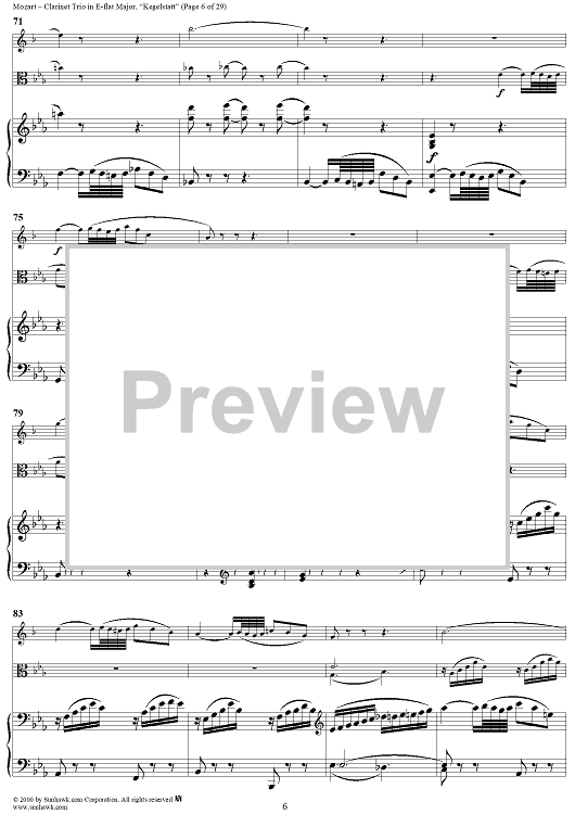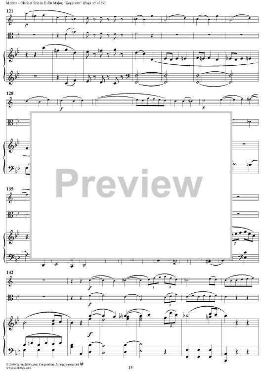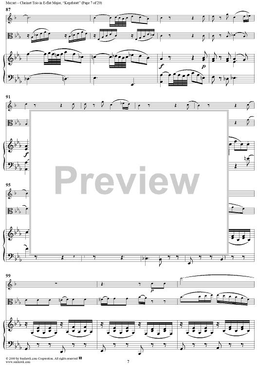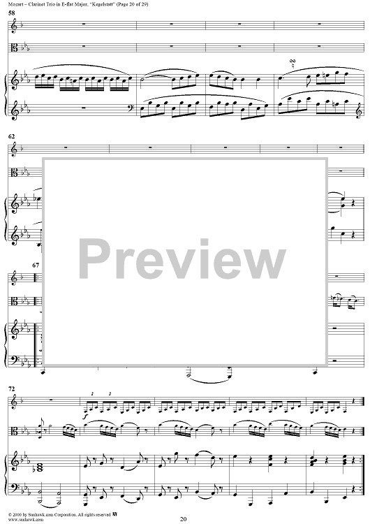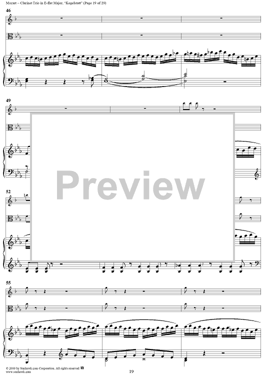 Digital Sheet Music for Clarinet Trio in E-flat Major - Piano Score by Wolfgang Amadeus Mozart scored for Clarinet/Viola/Piano; id:260333