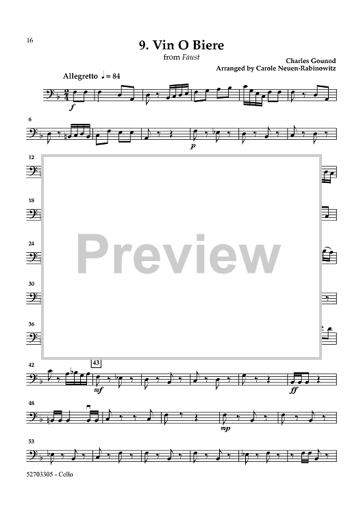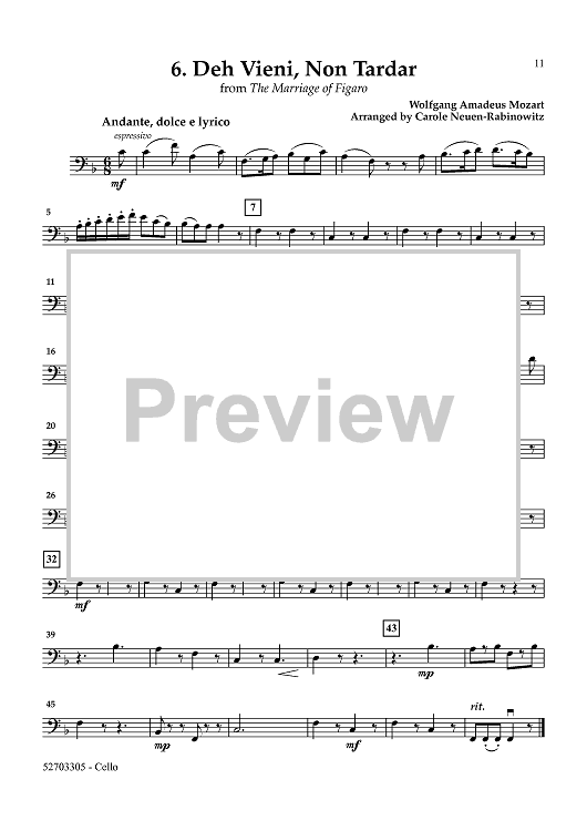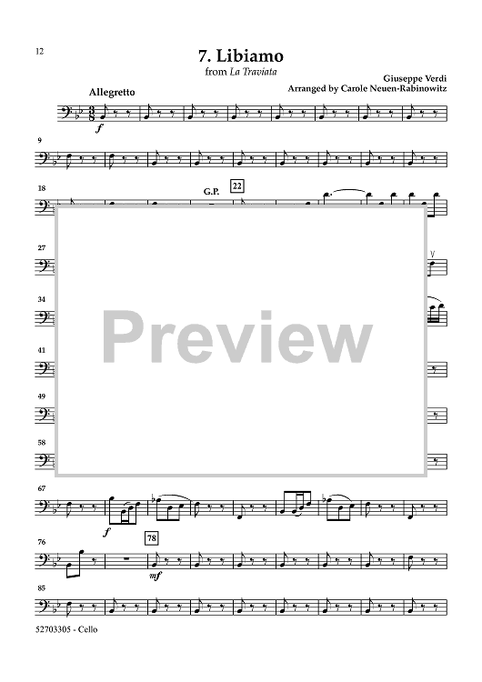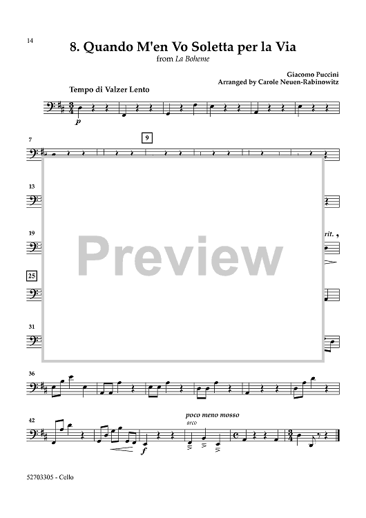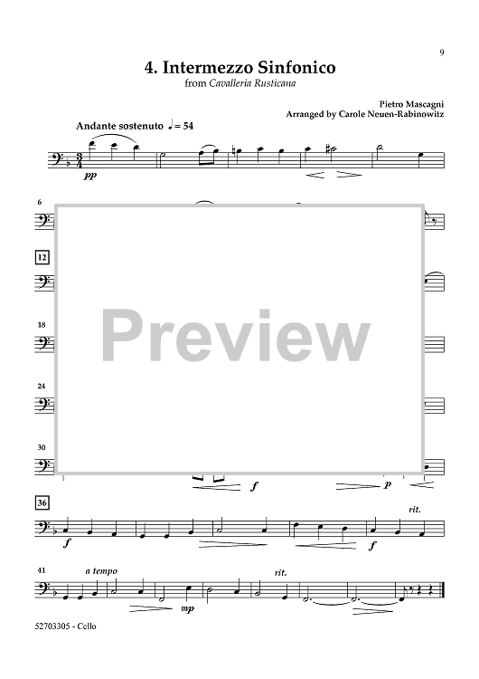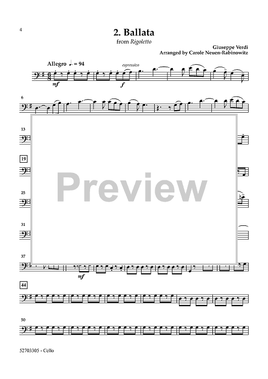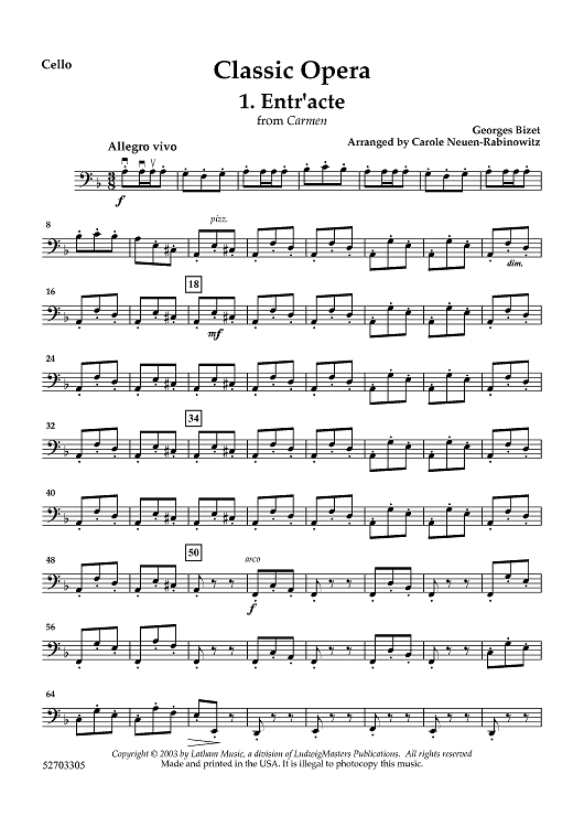 Digital Sheet Music for Classic Opera - Cello by Various, Carole Neuen-Rabinowitz scored for String Quartet; id:463436