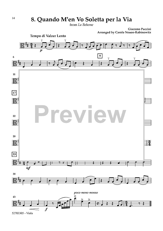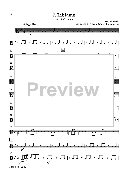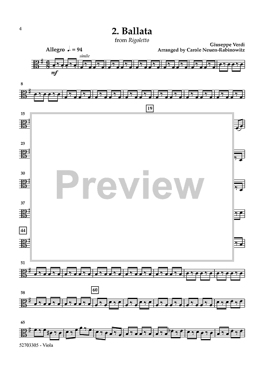 Digital Sheet Music for Classic Opera - Viola by Various, Carole Neuen-Rabinowitz scored for String Quartet; id:463435