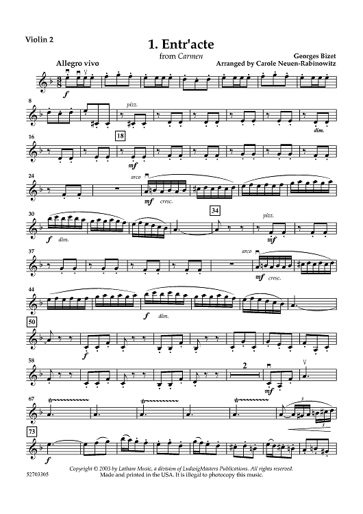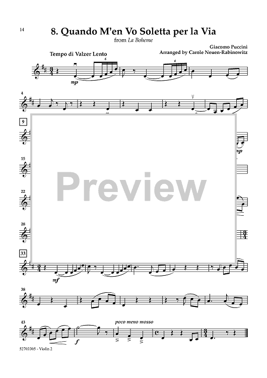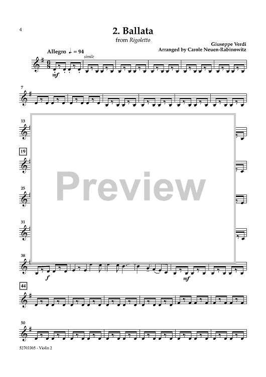 Digital Sheet Music for Classic Opera - Violin 2 by Various, Carole Neuen-Rabinowitz scored for String Quartet; id:463434