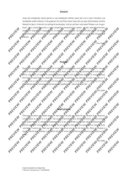 Each of the pieces presented here is one of the most popular pieces of its time and widely known through radio broadcast and recordings. Arranged for four flutes, these hits from two countries will provide the performer with plenty of material for ensemble playing which is such an important element of musical training. And they will inspire flutists to experiment, because it is so exciting to play well-known music "wrapped up" in a new sound on one's own instrument not included in the original. As a little tour through the history of music, this collection tries to encourage musicians to play together and - above all - have fun.