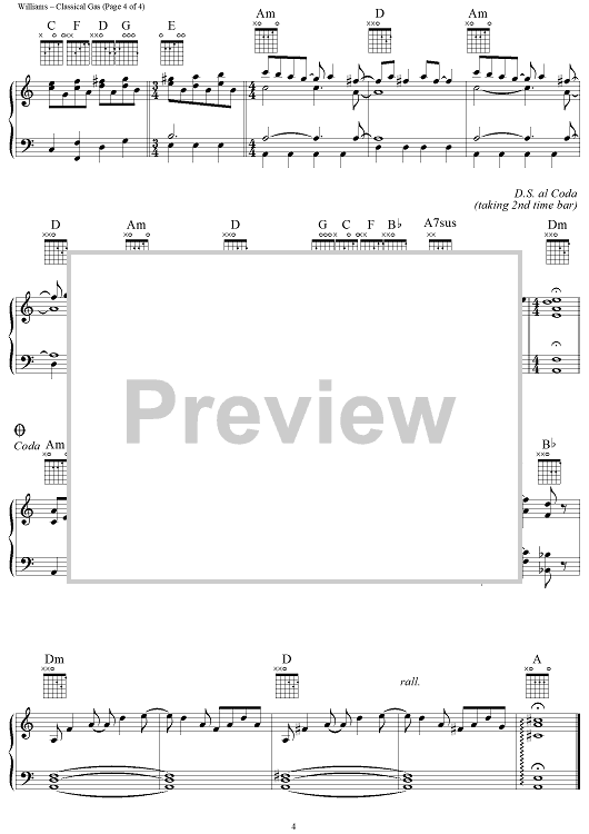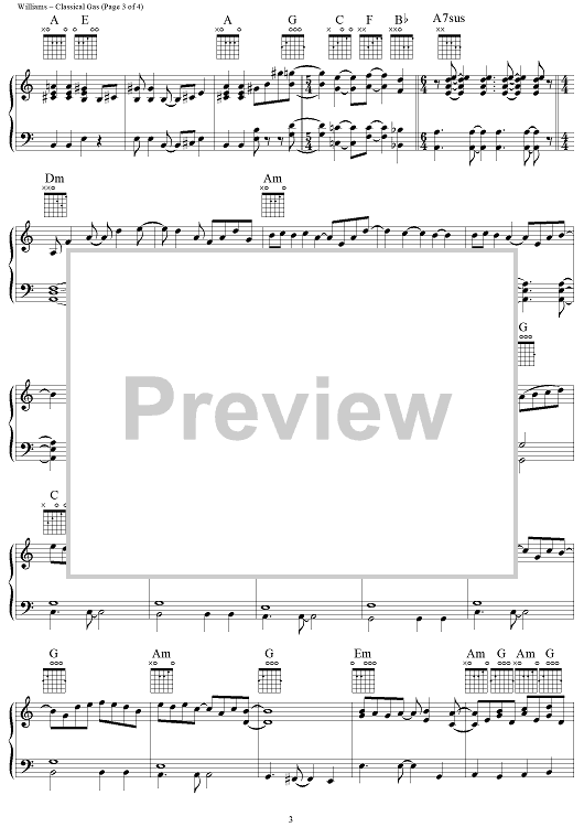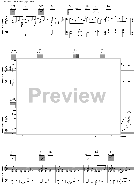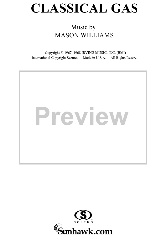 Digital Sheet Music for Classical Gas by Mason Williams scored for Piano Solo; id:112237