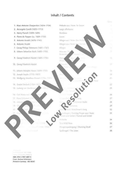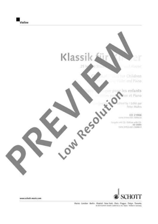 25 easy pieces from the Baroque, Classical and Romantic eras, playable in the first three finger patterns in the first position, for violin pupils from the second year of learning. Apart from lesser known works, this edition also contains many popular pieces, such as themes from Vivaldi's Four Seasons, Handel's Fireworks Music and Water Music, Mozart's Magic Flute or Beethoven's Symphony No. 9. This volume's intention is to grant access to classical masterpieces of concert literature with the help of such easy arrangements and spread the joy of classical music. A treasure trove for auditions at schools and music schools.