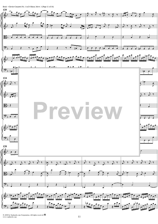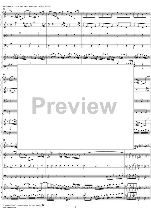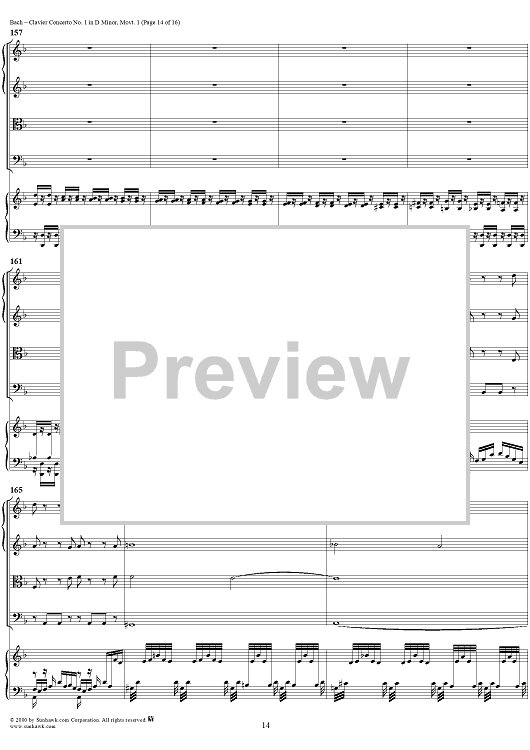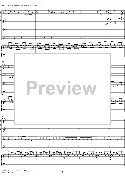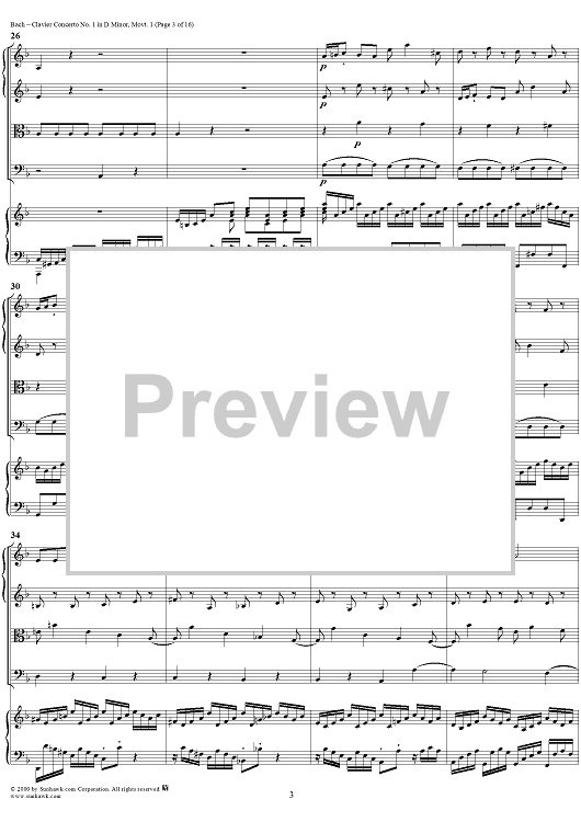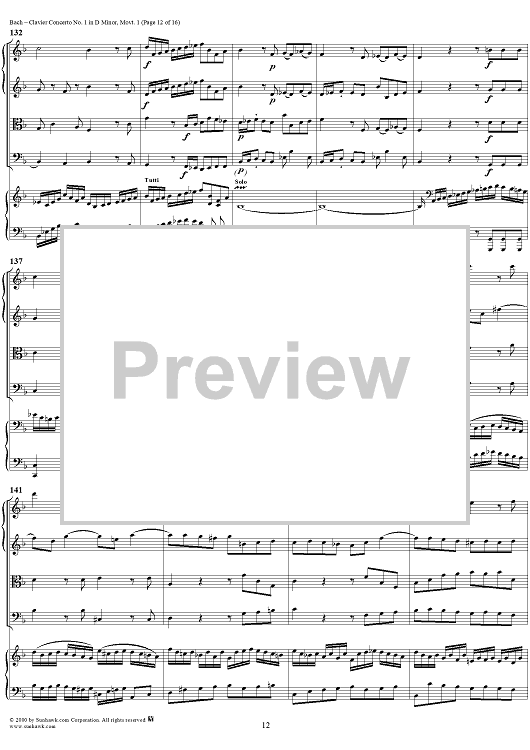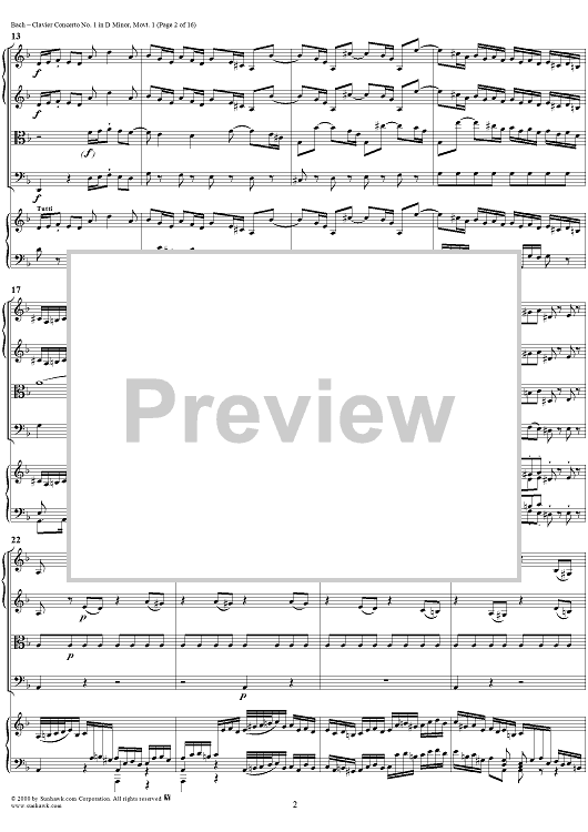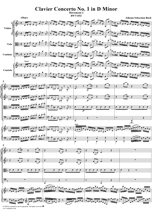 Digital Sheet Music for Clavier Concerto No. 1 in D Minor, Movement 1 (BWV 1052) - Score by Johann Sebastian Bach scored for Piano and Orchestra; id:236714
