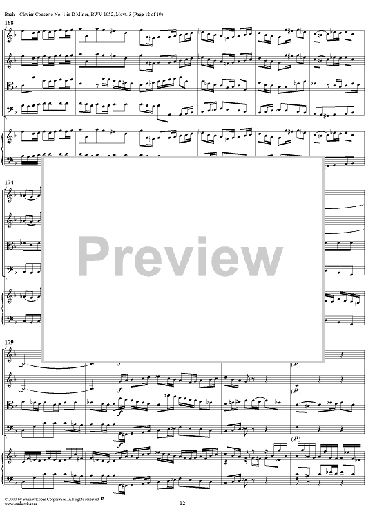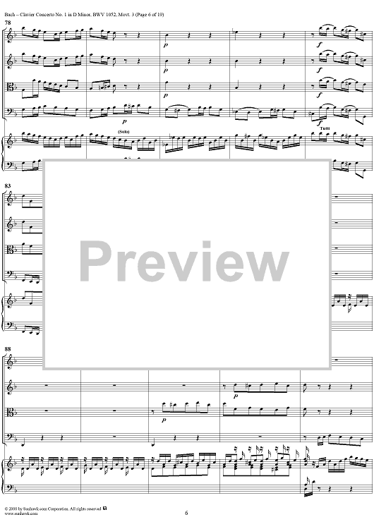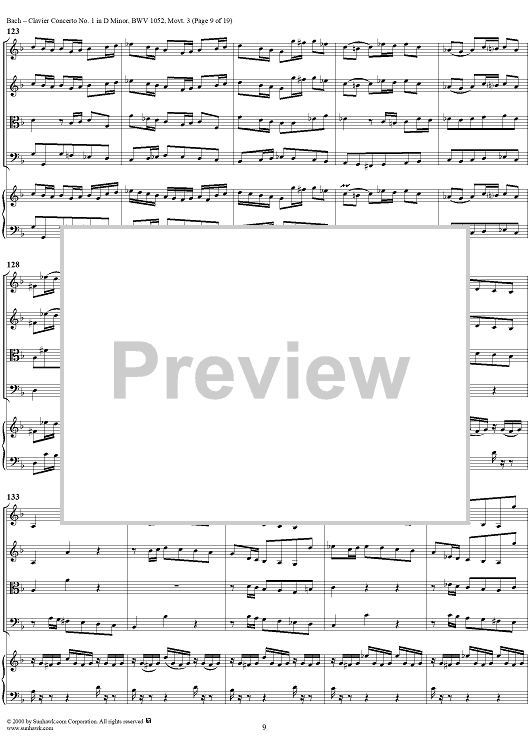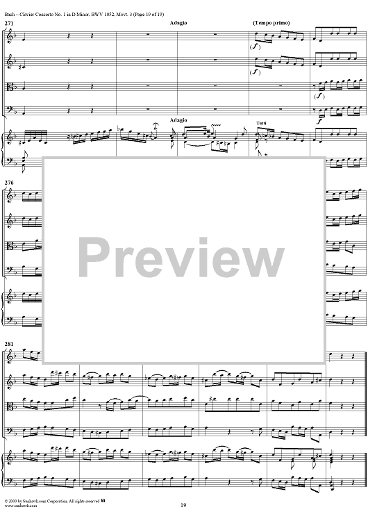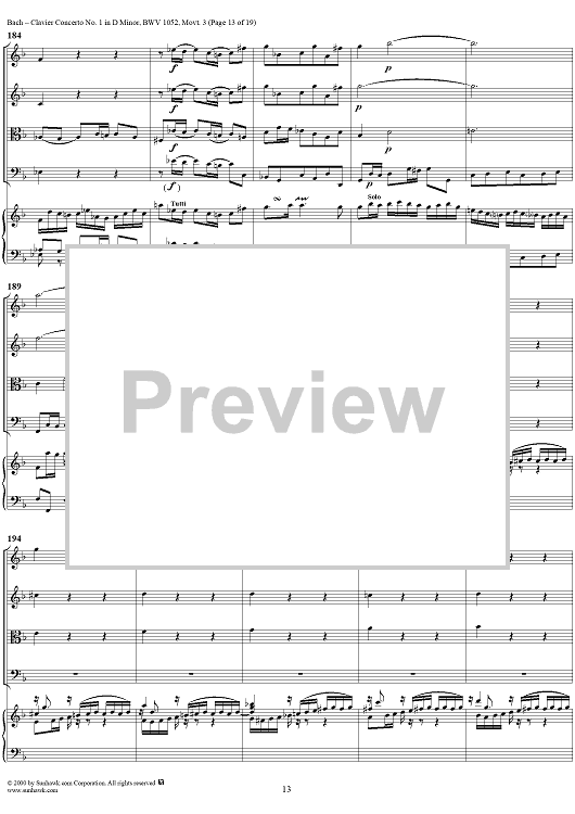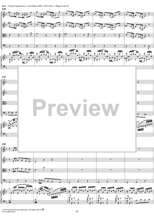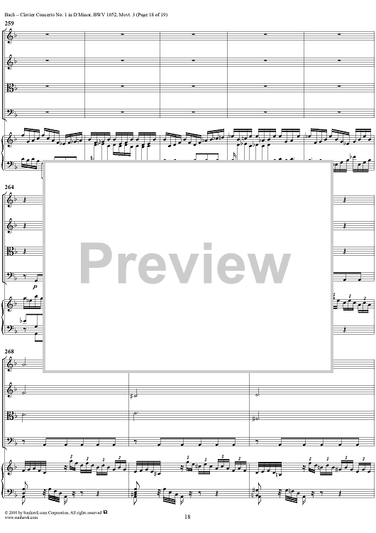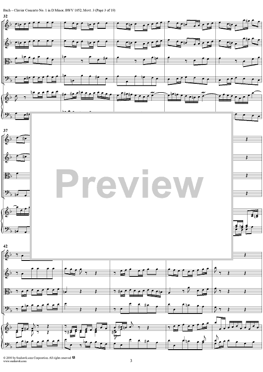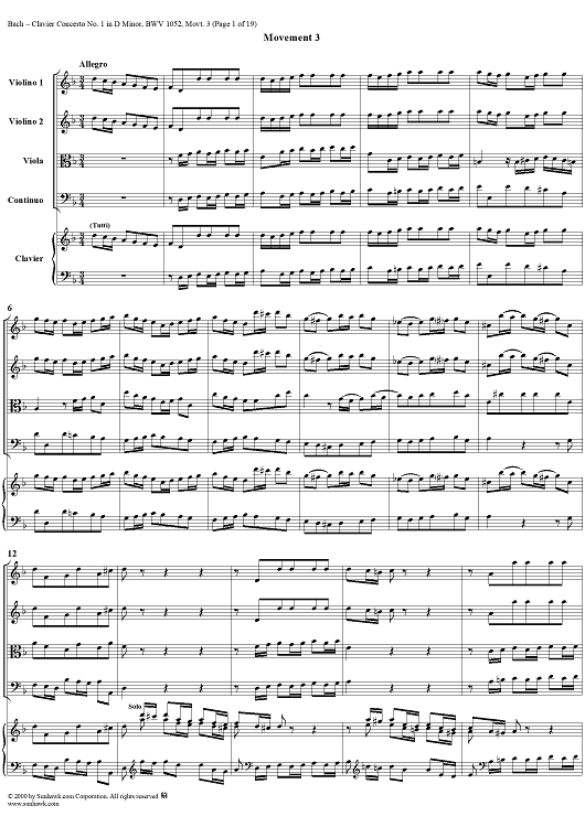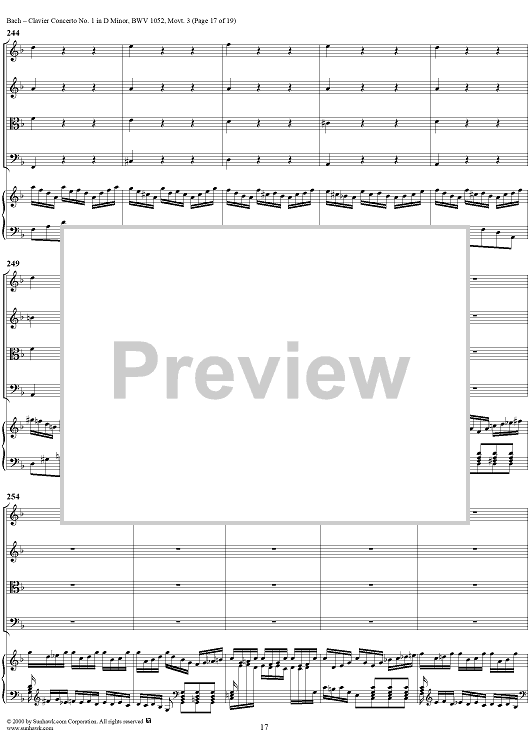 Digital Sheet Music for Clavier Concerto No. 1 in D Minor, Movement 3 (BWV 1052) - Score by Johann Sebastian Bach scored for Piano and Orchestra; id:236716