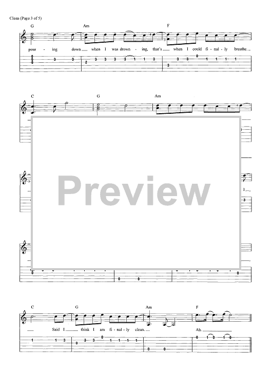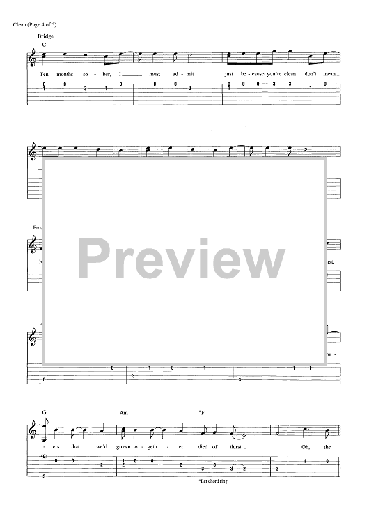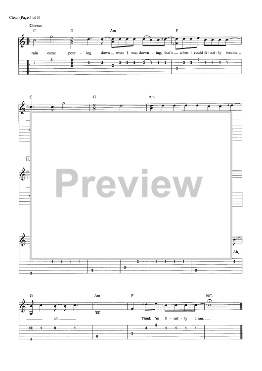 Digital Sheet Music for Clean by Taylor Swift, Imogen Heap scored for Guitar Tab/Vocal/Chords; id:456850