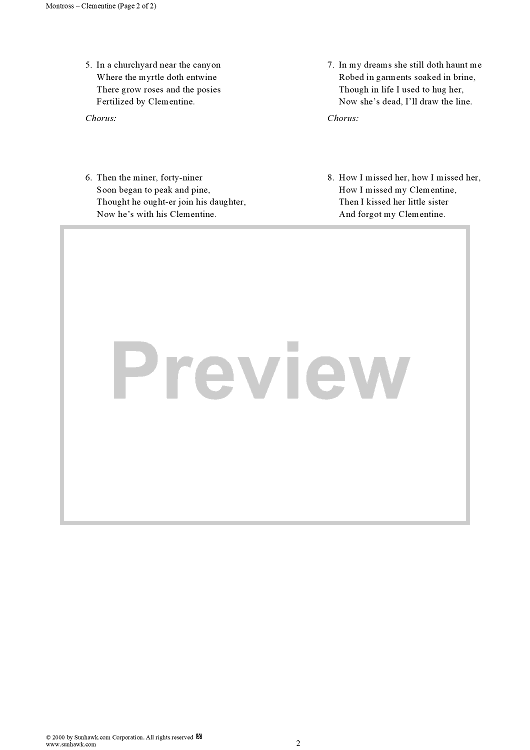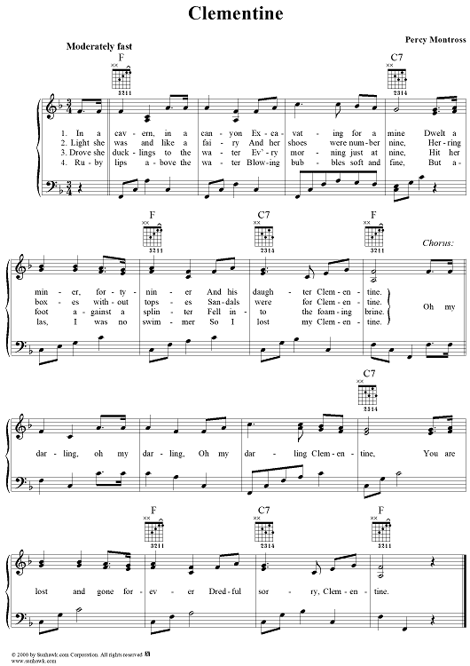 Digital Sheet Music for Clementine by Percy Montross scored for Piano/Vocal/Chords; id:252856