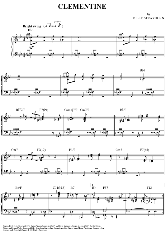 Digital Sheet Music for Clementine by Billy Strayhorn scored for Piano Solo; id:365429