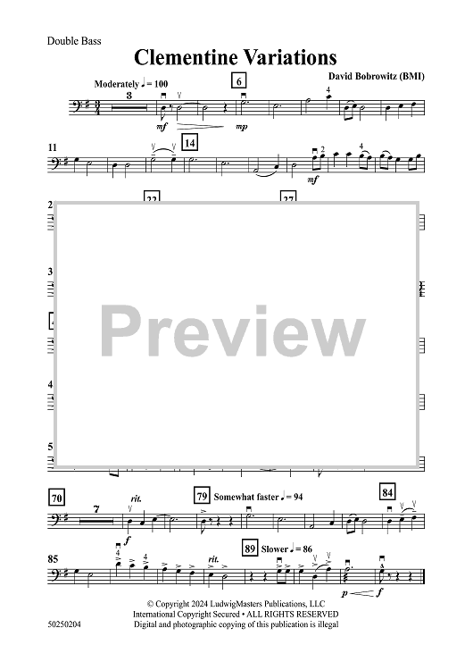 Digital Sheet Music for Clementine Variations - Double Bass by David Bobrowitz scored for Orchestra; id:503872