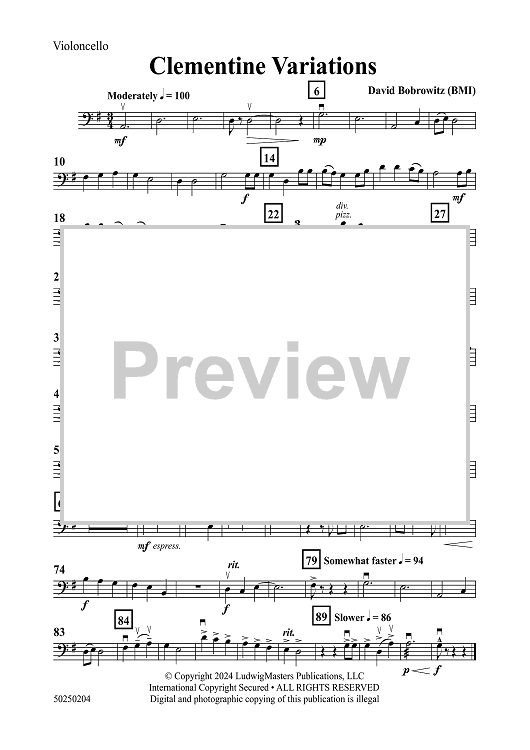 Digital Sheet Music for Clementine Variations - Violoncello by David Bobrowitz scored for Orchestra; id:503871