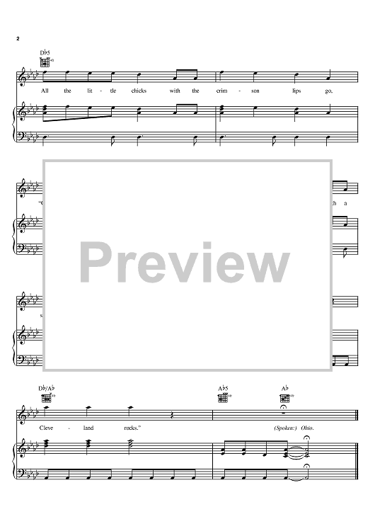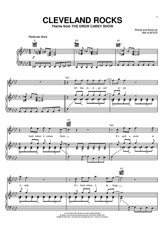 Digital Sheet Music for Cleveland Rocks by Ian Hunter, Presidents of the United States of Ameri scored for Piano/Vocal/Chords; id:368673