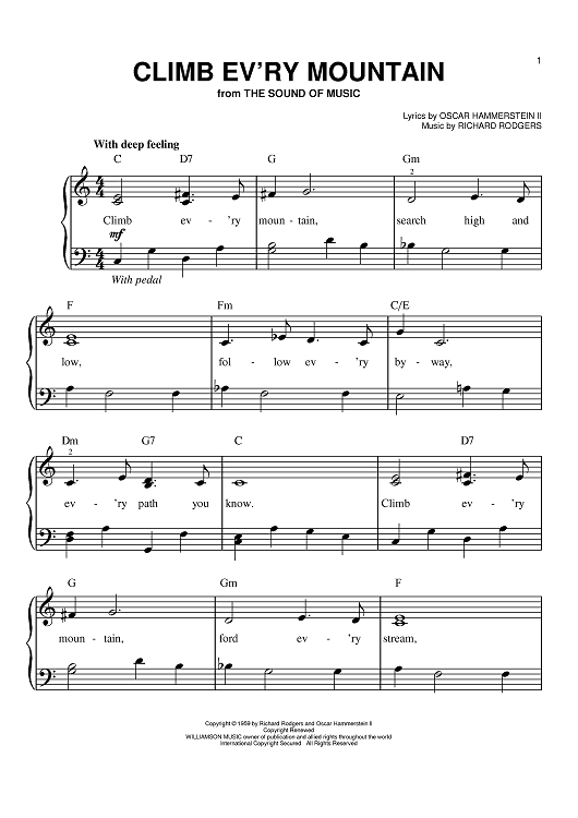 Digital Sheet Music for Climb Ev'ry Mountain by Richard Rodgers, Oscar Hammerstein II scored for Easy Piano; id:371863