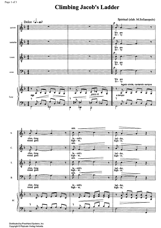 Digital Sheet Music for Climbing Jacob's Ladder by , Marco Sofianopulo, Traditional scored for Choir/Piano; id:328900