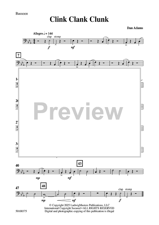Digital Sheet Music for Clink Clank Clunk - Bassoon by Dan Adams scored for Concert Band; id:509450