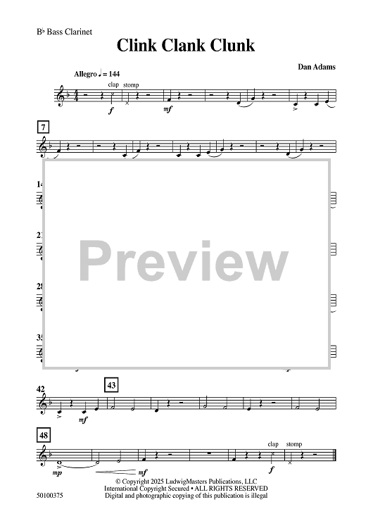Digital Sheet Music for Clink Clank Clunk - Bb Bass Clarinet by Dan Adams scored for Concert Band; id:509453