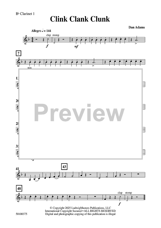Digital Sheet Music for Clink Clank Clunk - Bb Clarinet 1 by Dan Adams scored for Concert Band; id:509451