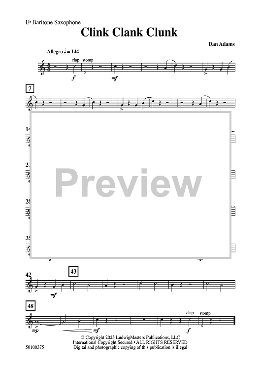 Digital Sheet Music for Clink Clank Clunk - Eb Baritone Saxophone by Dan Adams scored for Concert Band; id:509456
